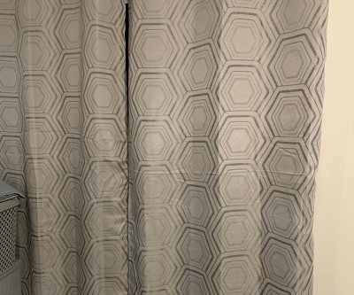 The curtains are pretty good. I got them for my guest room closet. The background is a light gray, and there is a light gray and dark gray in the geometric design. I needed something that was not see-through and these work well.