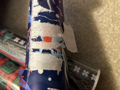 This wrapping paper was so cute but someone super glued the entire paper down the paper around the roll! I have tried too long to figure out a solution…probably going in the trash!
