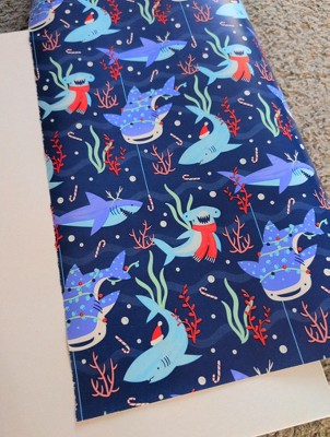 40" 125 sq ft Christmas Roll Wrap Festive Sharks on Blue - Wondershop™