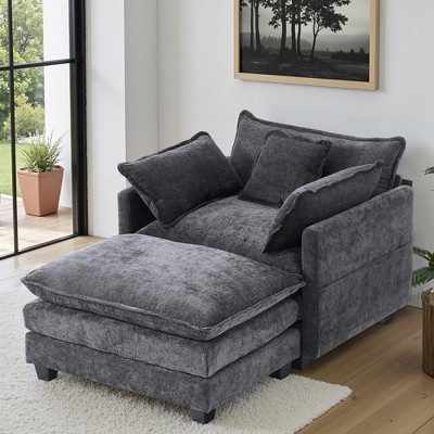 EHMKNP 40''W Comfy Cloud Sofa Armchair - Corduroy Oversized Chair & Ottoman Set, Plush Upholstery & Extra Deep Seat for Small Apartment Living Rooms