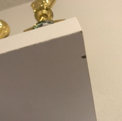 The particleboard shelves were badly scuffed and kind of a dingy white in color. The diamond-shaped pieces were cheap plastic and also had some scuffs. Crazy expensive for what a cheap, poorly made product it is.