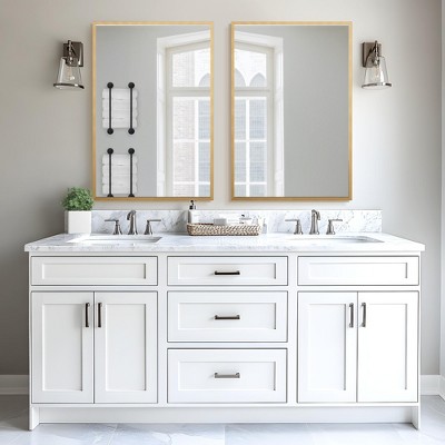 40"x30" Rectangle Bathroom Mirror with Aluminum Alloy Frame, Wall Hanging Mirror Wall Mounted Vanity Mirror for Bedroom Living Room Entryway, Gold