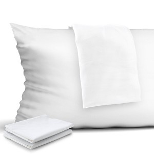 Protect your pillows with our 4-Pack of Zippered Pillow Protectors. Made from premium 400 thread count 100% cotton in a sateen weave, these pillowcases offer a soft and luxurious feel. They are not only breathable but also provide reliable strength for a neat appearance. With a pore size of just 3-4 microns and a tight weave, these pillow protectors offer ultimate protection, breathability, and comfort. The invisible zipper and fully zipped enclosure ensure full coverage and protection from all ends. These pillowcases are easy to care for, resisting shrinkage and maintaining pore size through repeated laundering. Each set includes 4 pillowcases in your choice of Standard, Queen, or King sizes. Sleep comfortably and protect your pillows with our high-quality zippered pillow protectors.