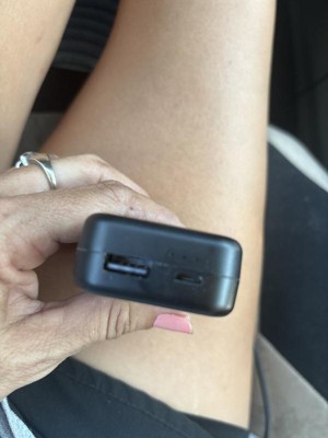A: Hi, thanks for reaching out about the 4000mAh Power Bank with Micro USB Cable - dealworthy™ Black: Short Circuit Protection, Charge Indicator Light It is generally not recommended to use the power bank to charge another device (like your phone) while the power bank itself is being charged (pass-through charging). Yes, it requires user input. Power banks of this type usually have an On/Off button If you have any additional questions, we welcome you to contact MyTGTtech at 833-848-8324 every day between 7 am and 11 pm CST.