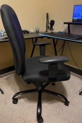 [This review was collected as part of a promotion.] This Boss Heavy Duty Task chair is sturdy. It is rated at 400 lbs. and this seems reasonably accurate. It is built with quality parts and was fairly easy to assemble. (My 14 year old grandson put it together in about 30 minutes and the instructions were simple and easy to follow. ) The chair has rolling wheels, it swivels, arm rests raise up and down and the whole chair will raise or lower. I love this chair.