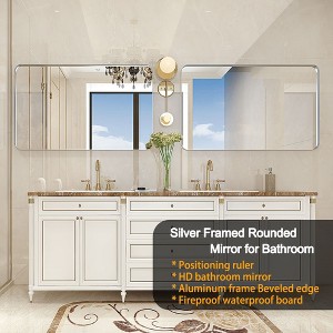 Enhance your bathroom with our Wall-Mounted Beveled Edge Bathroom Mirror, featuring a new design that combines beauty and functionality. The beveled edge not only adds elegance but also ensures automatic drainage, preventing water stains. Constructed with fireproof and waterproof materials, this mirror is built to last and maintain a clean, beautiful appearance. The HD float glass design guarantees a clear, distortion-free reflection for accurate image reproduction. The glossy brushed silver metal frame, made from high-quality aluminum alloy, offers rust resistance and structural integrity, complementing both modern and industrial styles with its simple, classic lines and rounded corners. Installation is a breeze with the included ruler, and the sturdy stand allows for vertical or horizontal hanging to suit your preference.