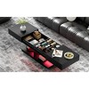 - This coffee table combines innovative functionality with modern design. The extendable tabletop adapts seamlessly for gatherings or compact daily use, featuring a smooth-glide mechanism for easy adjustment. Versatile storage includes open shelves, small cubbies, and a central display space, keeping your living area organized and stylish. Built-in 16-color LED strip, controlled via Bluetooth app, allows effortless lighting customization for any occasion. Durable MDF base provides stability, and tool-free assembly ensures quick setup. Practicality, aesthetics, and smart features converge in this versatile centerpiece.