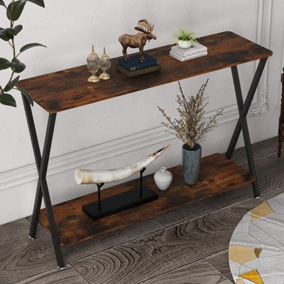 41.3" Console Table Hallway Table Sofa Table Industrial 4-Tier Entryway Table with Circle Base