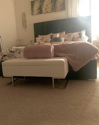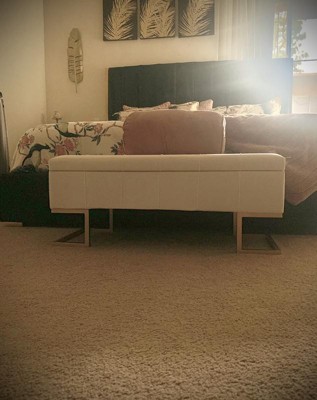 LumiSource 41" Midas Glam Storage Bench Steel/Velvet Gold/White: Upholstered Ottoman with Lift-Top, Tufted Design
