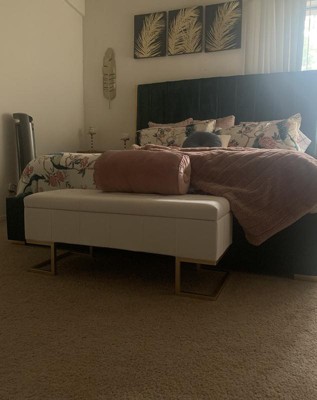 The Midas Storage Bench by LumiSource provides convenient storage along with a stylish look. Perfect for extra seating, an entryway, or at the foot of a bed, the Midas Storage bench features a geometric gold metal frame, and sleek button-tufted velvet upholstery. Open the flip-top lid to find a roomy storage area where you can conveniently hide magazines, remote controls, and anything else you want to keep out of sight.