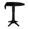 International Concepts home furniture is for those who appreciate high quality, wood furniture with a traditional and elegant look. This piece will beautifully complement your kitchen or dining room. This dual dropleaf dining table is made of solid wood. It measures 42"W x 42"D, with 9" drop leafs on each side. The pedestal base has four feet for maximum support. It is available in dining height, counter height or bar height. It has a washed gray taupe finish, and comes ready to assemble.