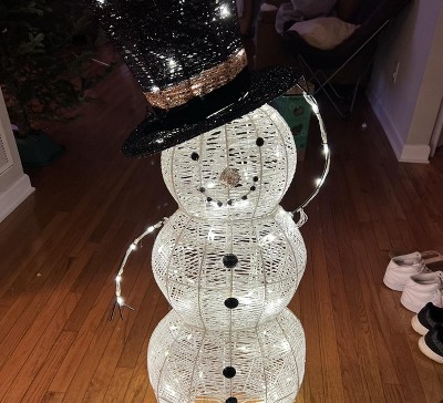 This snowman holiday sculpture is adorable and the twinkly lights definitely add a bit of magic to his appearance. Unfortunately, ours did come damaged (part of his mouth was knocked off and his body needed to be modified to fill a huge gap). We are fairly crafty so were able to mend him but for this price point, I would have expected better craftsmanship and durability.