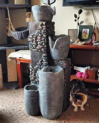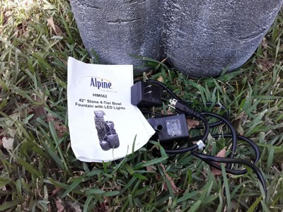 [This review was collected as part of a promotion.] I LOVE my new Alpine Outdoor 4 Tier Stone Bowl Fountain with LED Lights. Unbelievable quality I’ve come to rely on with the Alpine brand - I’ve never been disappointed. The sound of the water flowing from the tiering bowl-style design is so relaxing. At night the lights illuminate the entire area and you can see the fountain as well as the water as it pours down. Looks great and was easy to setup.