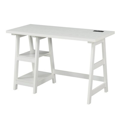 42" SoHo Glass Desk with Charging Station Faux White Marble - Breighton Home: Modern Office Furniture with Drawer
