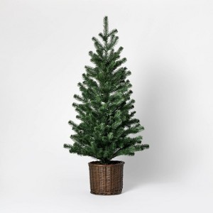 This Spruce Christmas Artificial Tree from Threshold™ designed with Studio McGee brings sophisticated holiday elegance to your home. This artificial tree showcases faux spruce branches in a rich green hue that is placed in a brown woven rattan-like pot, sure to infuse fresh holiday vibes into your decor. Whether displayed in your living room, entryway or dining space, this artificial spruce tree provides lasting holiday charm year after year without maintenance.