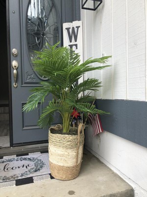 I love this palm plant. It looks so realistic, even my husband thought that it was a real plant. It is pretty big in size 42 inches tall it comes with a wicker basket, and it can be used inside or even outside. I love artificial flowers and this palm plant goes very well in my living room and makes room to look cozier. This plant is very lightweight and very easy to move from one place to another. I am even thinking to get one more of the same plant for the entry, as those artificial plants look beautiful and easy to maintain.