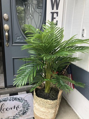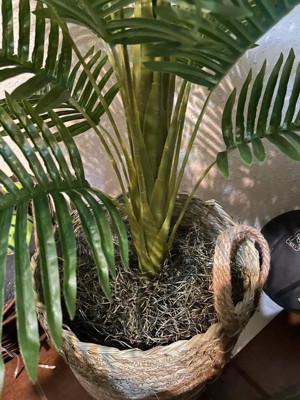 42" x 28" Artificial Palm Plant in Basket - LCG Florals: Indoor Faux Floor Plant, Polyester Greenery in Wicker Basket