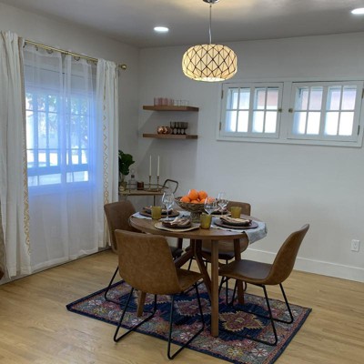 As a designer, this is my favorite flexible dining table. I’ve used it many times. It’s the perfect size for a nook or a dining space. It’s a flexible tone and can mix with different color palettes/ styles. It’s high quality and durable.