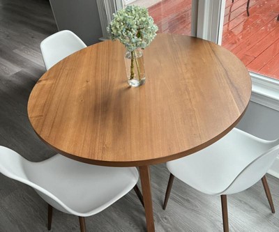 Great table for the price and feels sturdy! Love its look. Fits great in my small eating area