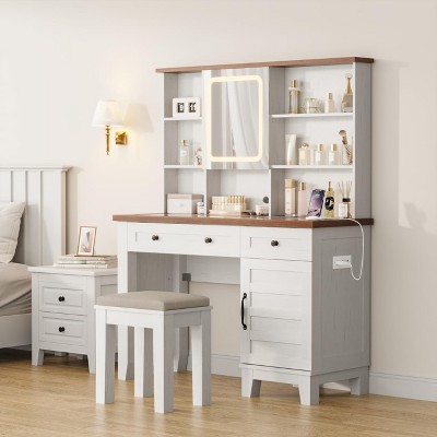 - Stay Charged: Stay connected with a built-in charging station featuring two AC outlets and two USB ports. This allows you to charge devices while getting ready, making it a functional addition to any dressing table—no more searching for outlets