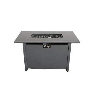 42" Smoked Glass Metal Rectangle Fire Pit (Black)