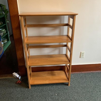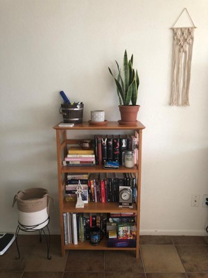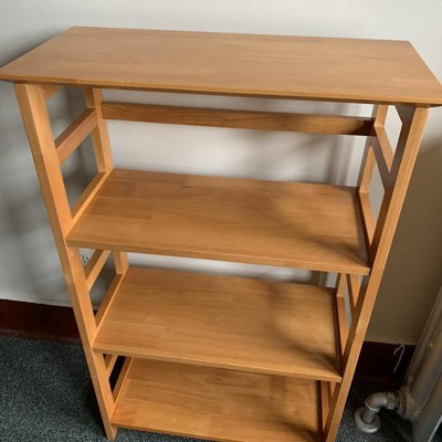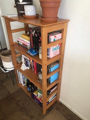 Reviews sounded good, so I ordered this to keep some extra bathroom stuff on. Husband and our 8 year old put it together, no problems. Took around 30 minutes, maybe 45, with kid help :) I really like the look of it, not too dark, not too light, it is a 'honey' color. Seems sturdy. I'm not using it for a bookshelf, it's kind of tucked away out of sight, but I would definitely get another one to keep books on, knick-knacks, etc.--it's a really good looking shelf.