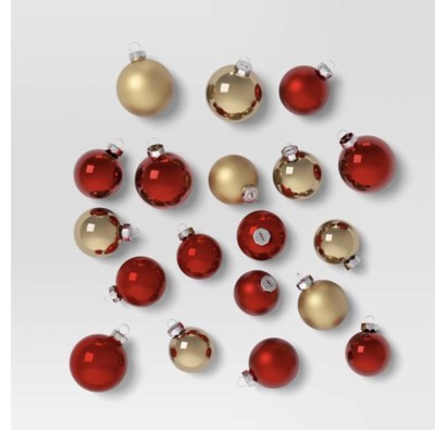 Give your ornament collection a complete refresh with this 42-Count Round Glass Christmas Tree Ornament Set from Wondershop™. Made of glass, this ornament set features 42 ball ornaments of various sizes in red and gold hues for a lively pop of color. Plus, each ornament has a silver-tone cap with a coordinating top loop for easy hanging from the branches of your Christmas tree.