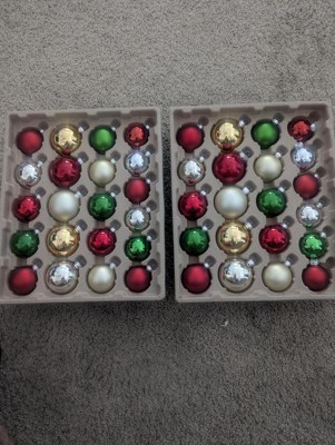 For the most part, these traditional Christmas color ornaments are great. This package of 42 come in three different sizes. I did find at least one ornament that was scratched from I'm assuming was rubbed against something. The variety of colors come in both matte and glossy shine.