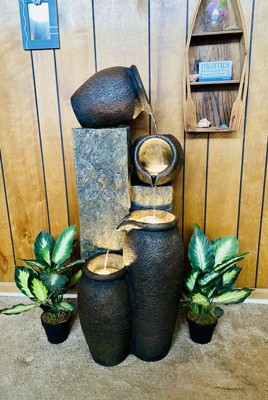 [This review was collected as part of a promotion.] Wow wow wow! We love this pottery fountain! I can’t believe how beautiful this is in our home.it is very well made and can be used indoors or outdoors but we are using ours indoors.it comes mostly put together but you have to do a little bit ,hubby got it done in like 20 minutes. The lights on this shining on the water filling the pots is so beautiful and then listening to the fountain which kinda sounds like a waterfall is soothing and relaxing! This is great to have on and rewind in the evening. It’s so beautiful and we love it.if I could give this 10 stars I would lol ,it only allows 5 stars but we love how it looks in our home ,how well made it is,and how it helps you wind down and relax.