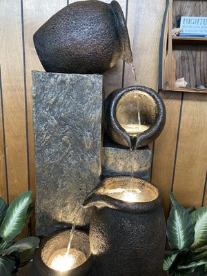 43" Resin Pottery Fountain with LED Lights & Pump - Alpine Corporation: Weatherproof, Rust-Resistant