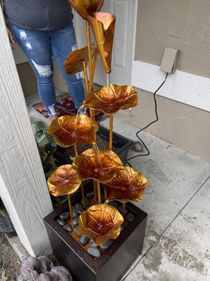 [This review was collected as part of a promotion.] Alpine Corporation - Alpine Corporation 43" Tall Outdoor Cascading Leaves Metal Fountain is gorgeous! Out of the box and ready to go in minutes. Beautiful to see. Beautiful to hear. The sound of water is so calming and soothing. In fact, it's so calm and southing that my fur babies surround the fountain to sleep.
