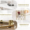 - Large Storage: This gold console table is equipped with multiple storage spaces. The round side shelves of the entry table is designed to provide an extra storage area and give you the flexibility to divide the table into storage or display areas, which are perfect for storing items such as books, keys, collections, hats, or decorations. Additionally, the tabletop are marble texture board and demonstrates excellent craftsmanship while providing storage space.
