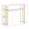 - Designer Style: This console table combines marble grain finishes and gold metal, creating an elegant and modern atmosphere. The entryway table takes up small space to provide multiple options for storage, display and more, perfect for entryways, hallways, foyers, corridors, space behind sofa couches, and any other spaces in your home. The sofa table blends modern and luxury to complement any decor and add appeal to your home.