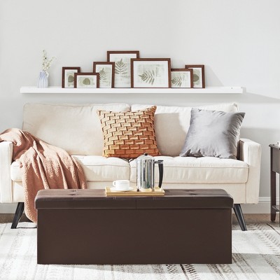 LEDREM 43 Inches Folding Storage Ottoman Bench, Storage Chest, Footrest, Bedroom Bench, End of Bed Bench, Coffee Table, Faux Leather Padded