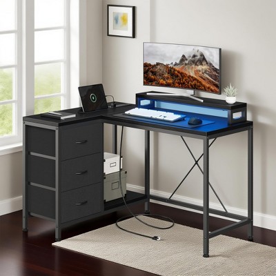 43" L Shaped Gaming Desk, Computer Desk with Power Outlets & Led Lights, Corner Desk with Monitor Stand