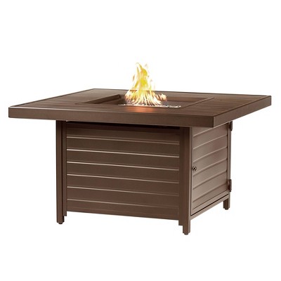 44" Round Aluminum Outdoor Propane Woven Fire Table with Wind Blockers & Propane Tank & Table Covers - Oakland Living