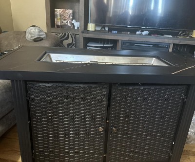 44 Inch Propane Outdoor Fire Pit Table, 50000BTU , Slate Tabletop with Hidden Ignition, Glass Stones & Rain Cover for Garden Patio Outdoor Use