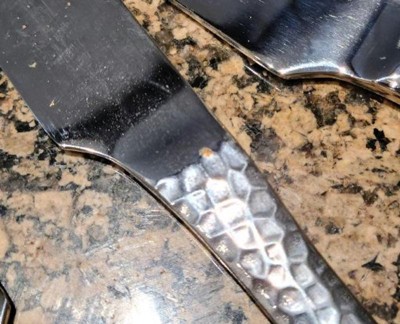 I received these as a Christmas gift and as I was unpacking them I see a weird deformed line in the metal on the back of one the spoons and a knife that already has a tiny rust spot somehow. Overall, the quality is not what it should be for the price.