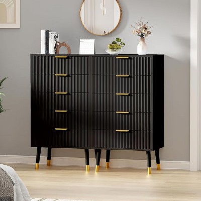 ¡¾Rugged Construction¡¿Crafted from MDF with metal handles and legs, this dresser and nightstand set is both visually striking and built for long-lasting durability in any bedroom environment.