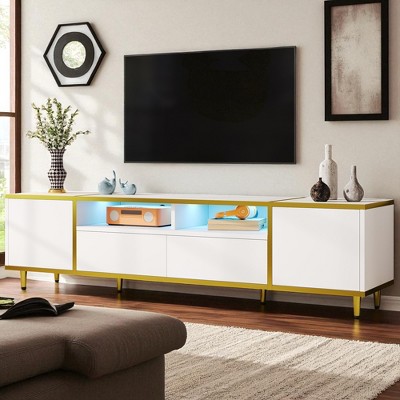 Perfect for living rooms, bedrooms, or small apartments. Designed to hold TVs up to 43'', while offering stylish storage for electronics, media accessories, and decorative accents.