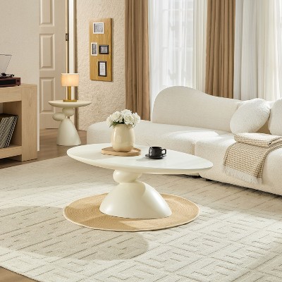 47.2" Modern White Oval Coffee Table with Sculptural Base, Minimalist Fiberglass Center Table for Living Room-Panipeachy