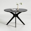 - The circle dining table boasts a unique pedestal base in an intersecting X-shape, not only lending a touch of novelty but also bolstering stability.