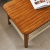 - (Mid-Century Boho Design): The combination of vintage wood grain and boho rattan accents creates a stylish, cozy, and versatile centerpiece suitable for farmhouse, mid-century modern, or eclectic interiors.