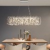 This is a luxurious and elegant Rectangular Crystal Pendant Chandelier, designed to add a touch of sophistication to any room. The crystal lights for dining room features an array of sparkling crystals that cascade down in a mesmerizing display, creating a stunning focal point above your dining table. The kitchen island chandelier's design is modern yet timeless, with its sleek lines and clean aesthetic. The crystal chandelier lighting is perfect for both traditional and contemporary interiors, adding a touch of glamour and elegance to any space. Whether you're looking for a statement piece or simply want to enhance the ambiance of your dining area, this rectangular crystal chandelier is sure to impress. Its warm glow will create a cozy atmosphere, making it the ideal choice for intimate dinners or large gatherings. Upgrade your dining room with this exquisite large crystal chandelier and transform your space into a truly magical environment.