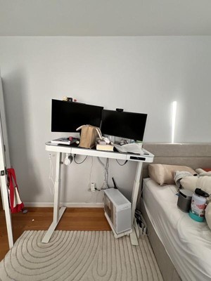 It's a pretty desk and whisper quiet, the front buttons get bumped all the time which is annoying
