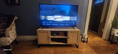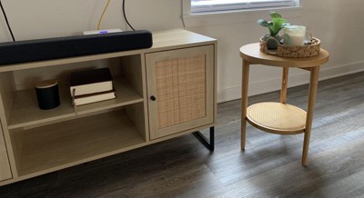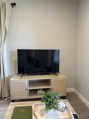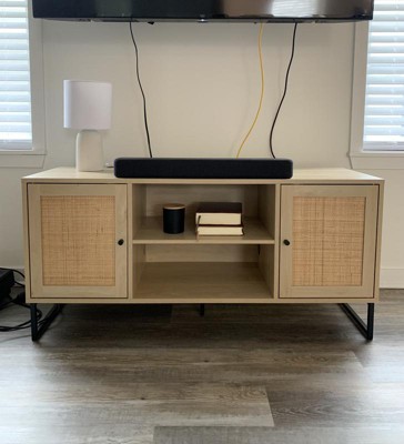 Nathan James 47" Mina Rattan and Wood 2 Door TV Cabinet for TVs up to 59" Light Oak/Matte Black: Media Console with Storage