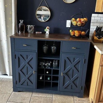 Oh my God! What a gorgeous coffee station cabinet! Vibrant navy blue beautiful wood top.. it is exactly what we were looking for our renovated kitchen. Thank you!!