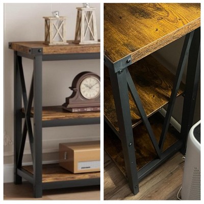 Spacious Storage Space: This long console table with storage measures 55.1 in x 13.4 in x 30 in with a wide desktop, and 3 tier entryway table design providing ample storage space where you can display your favorite photos, books, and decorations.Versatile Console: With a stylish and simple design, this entry way table complements various home decor styles. Wood console table works perfectly as an entryway table, sofa table, hallway table, behind couch table, or even a TV stand.Strong and Durable Construction: The foyer table top thickness is 0.6 in thick and made from high-quality MDF board with an V-shaped design on the sides for added stability, and the Rustic Brown console table for the entryway is durable and scratch-resistant.Industrial Style: The elegant design and meticulous craftsmanship of these foyer tables for the entryway embody the simplicity and warmth of industrial style. Whether placed in the entryway, behind the couch, or hallway, the metal entertainment center console adds a natural and inviting ambiance to your home.Easy Installation: The package includes detailed instructions for easy assembly of the narrow console table. No professional skills or experience are required - simply follow the step-by-step instructions to save time and effort.