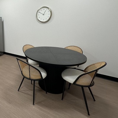 - Elegant Design: The round dining table features a uniquely natural textured tabletop and a Waveform design Metal base, enhance the texture and visual depth of space. The classic black round table seamlessly complements any decor