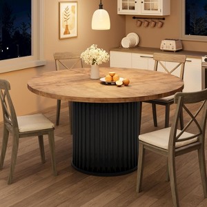 Elevate your dining experience with this stunning 47-inch round table that combines industrial style with practical functionality. The table features a unique waveform metal pedestal base that creates visual depth and modern appeal, while the natural textured tabletop in classic color adds sophistication to any space. With a diameter of 47.24 inches and standard 30-inch height, this table comfortably seats 4-6 people, making it perfect for family meals, entertaining guests, or serving as a versatile workspace.Crafted from premium materials, the thick MDF tabletop ensures durability and stability, supporting up to 350 pounds. The innovative construction uses flat metal connectors to seamlessly join tabletop panels, eliminating gaps and creating a perfectly smooth surface. The sturdy metal base provides exceptional stability without compromising on style.Ideal for various settings including kitchens, dining rooms, apartments, or even office conference rooms, this table maximizes space efficiency with its circular design that allows for easy movement around the table. The timeless finish complements any decor style from industrial to modern farmhouse. Assembly is straightforward with clearly labeled parts and comprehensive instructions, ensuring you can enjoy your new table in no time.